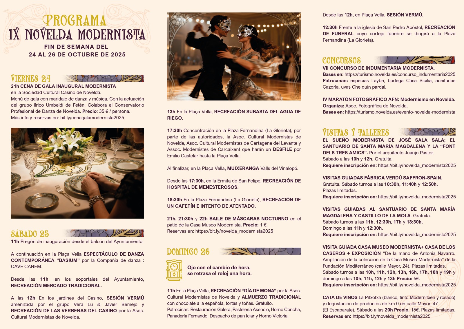 Preinscripción a las actividades modernistas Concurso de indumentaria Modernista Cena de gala inaugural modernista Descargar programación pdf Bases maratón fotográfico